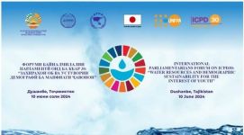 «ЗАХИРАҲОИ ОБ ВА УСТУВОРИИ ДЕМОГРАФӢ БА МАНФИАТИ ҶАВОНОН». Дар Душанбе Форуми байналмилалии парлумонӣ баргузор гардид